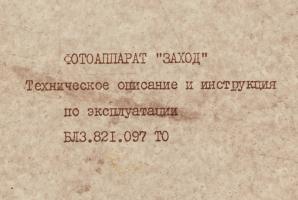 Device Operative surveillance camera Purpose Body-worn and mobile covert photography Model ZAKHOD, ЗАХОД (Sunset) Manufacturer KMZ Years 1989-1992 Predecessor AJAX-12 (F-21), NEOZIT (F-27) Successor - Distance 3 - 7 m Resolution 65 l/mm (centre), 35 l/mm (edge) Aperture f/2.8 - 11 in auto-mode (depending on lens) Film ZP-80, 16 mm unperforated, 0.08 mm thick Frame 14.8 × 21 mm Sensitivity 180, 250, 500 GOST Cartridge 30 exposures (1100 mm) Transport Electric motor drive Rewinding 1.5 s Shutter Electronic Speed 1/30s (manual), 1/60-1/1000 (automatic) Power 3 x D0.09 (3.5V) + 5 x D0.02 (5.5V) Dimensions 96 × 65 × 29 mm Weight 230 g 1