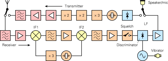 The lower part of the block diagram is the super-heterodyne receiver,