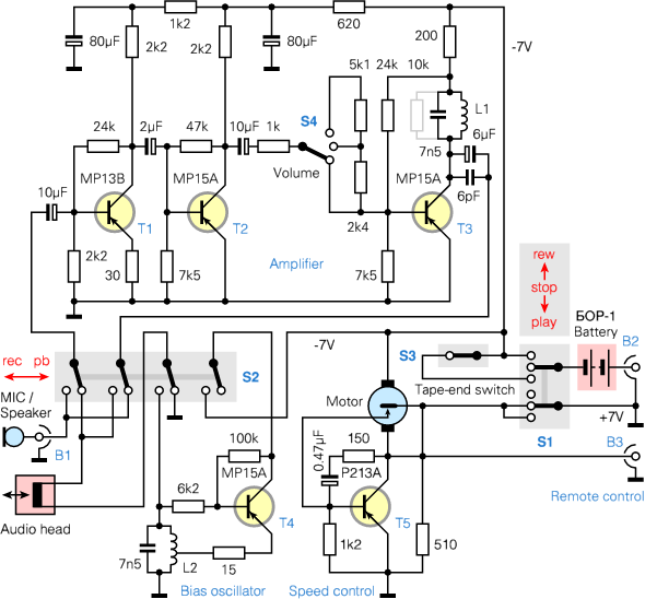 T3. Luckily, as it is connected in series with the volume control (S4), it