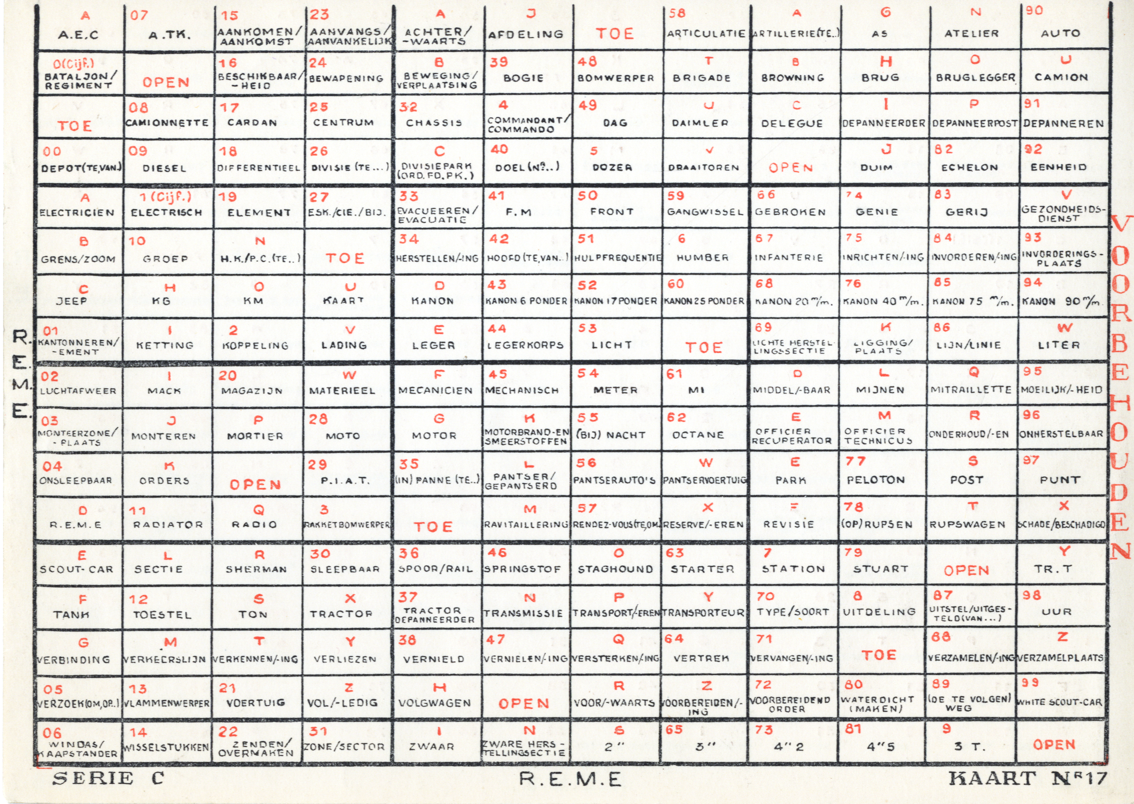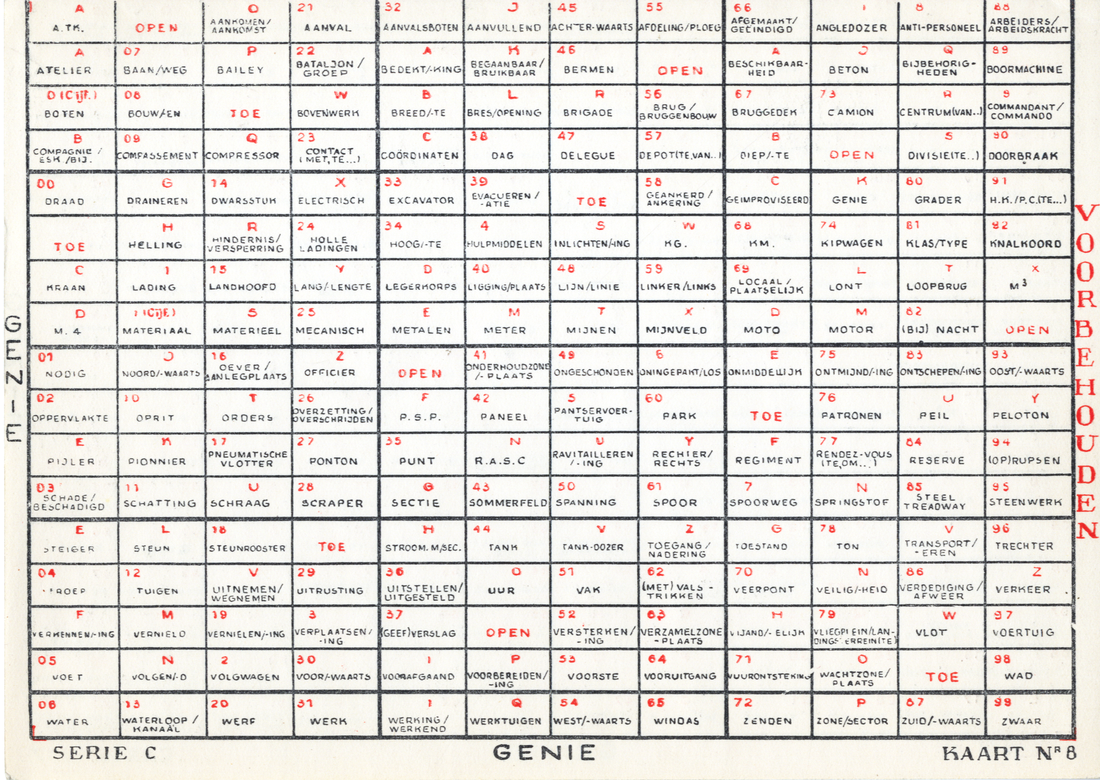 Slidex cards used in Belgium