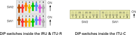 DIP-switches each. The sets are marked SW1 and SW2 and are arranged as shown