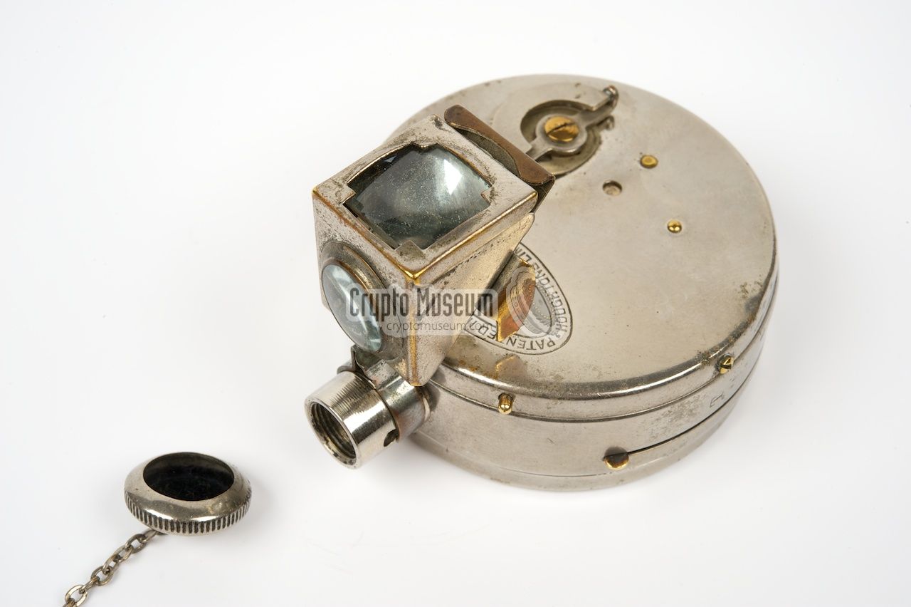 The camera is slightly thicker than a pocket watch of the same era and