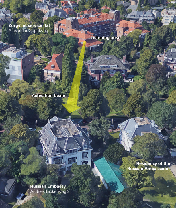 - Google Maps, Satellite image of area around Russian Embassy in The Hague