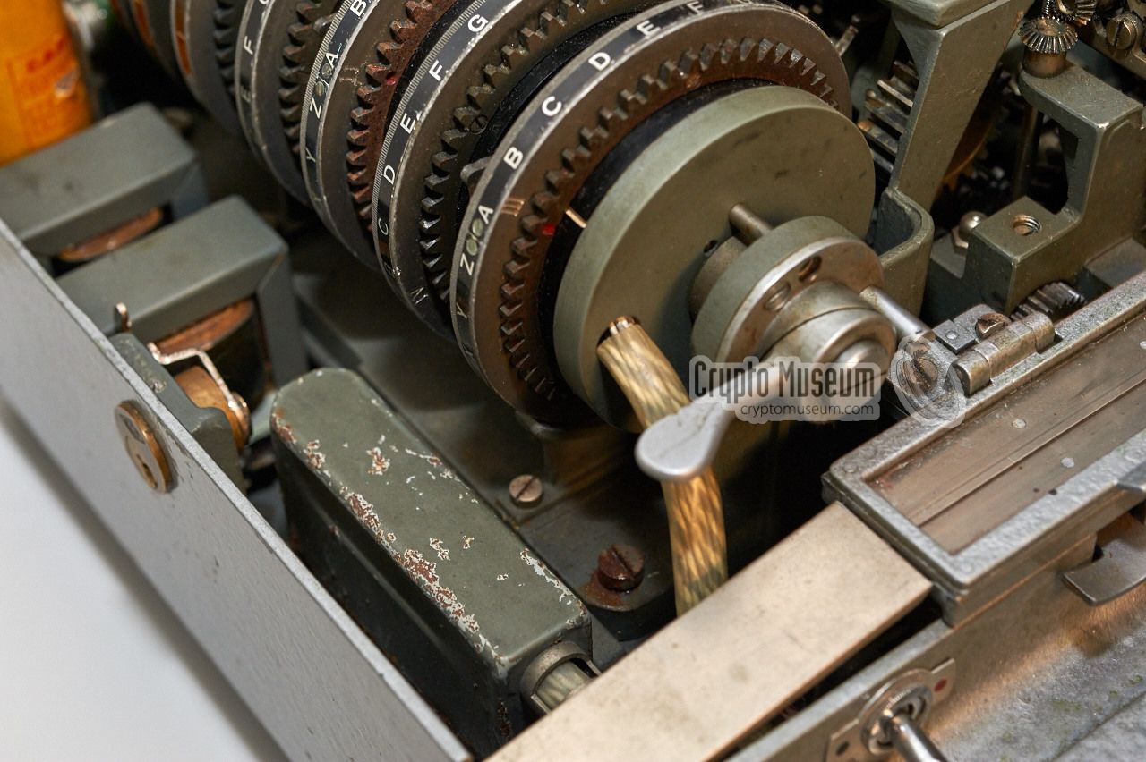 mechanical (cogwheel) coupling to their right. The cipher wheels can be