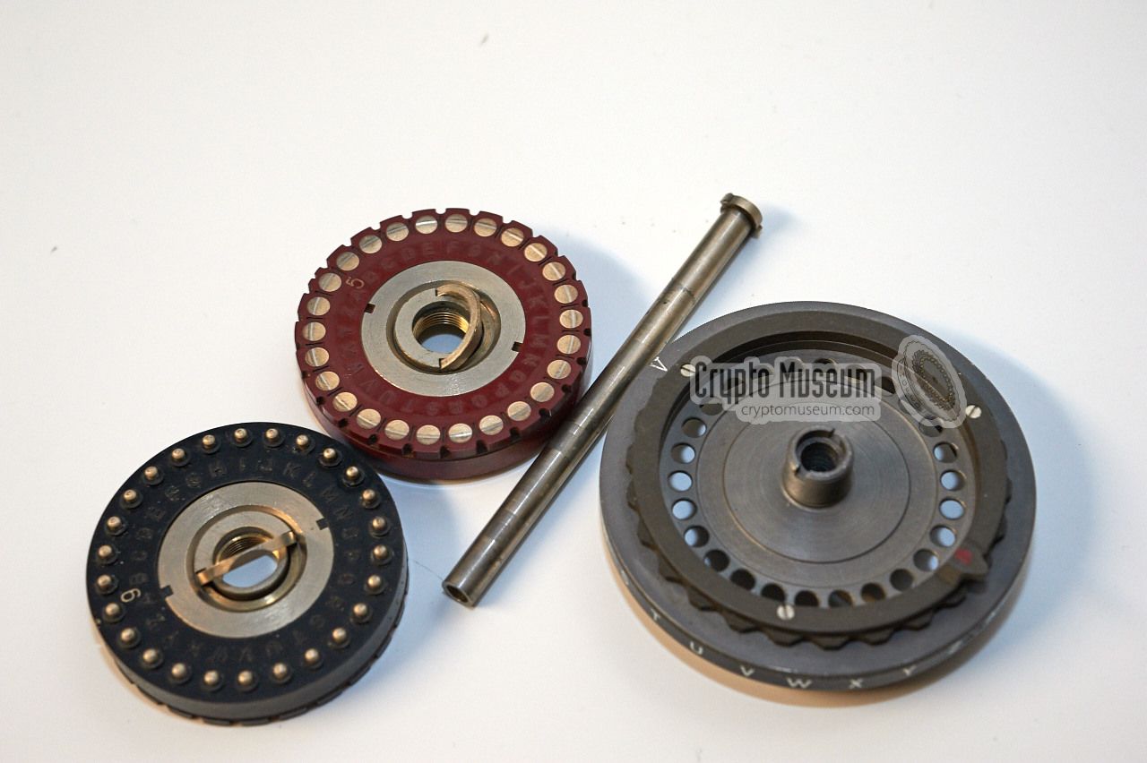 has a set of electromechanical cipher wheels with 26 contacts