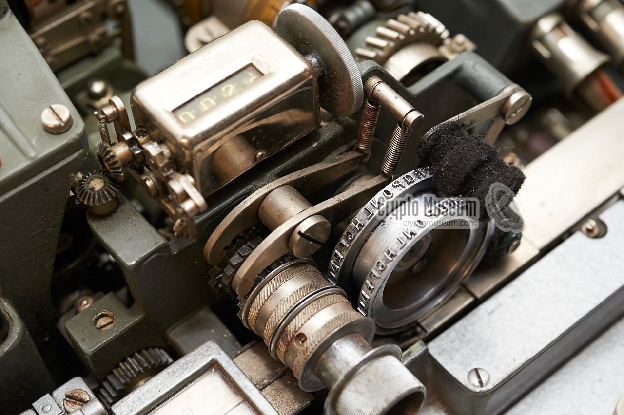 The cipher wheels are located inside the machine, left of the centre,