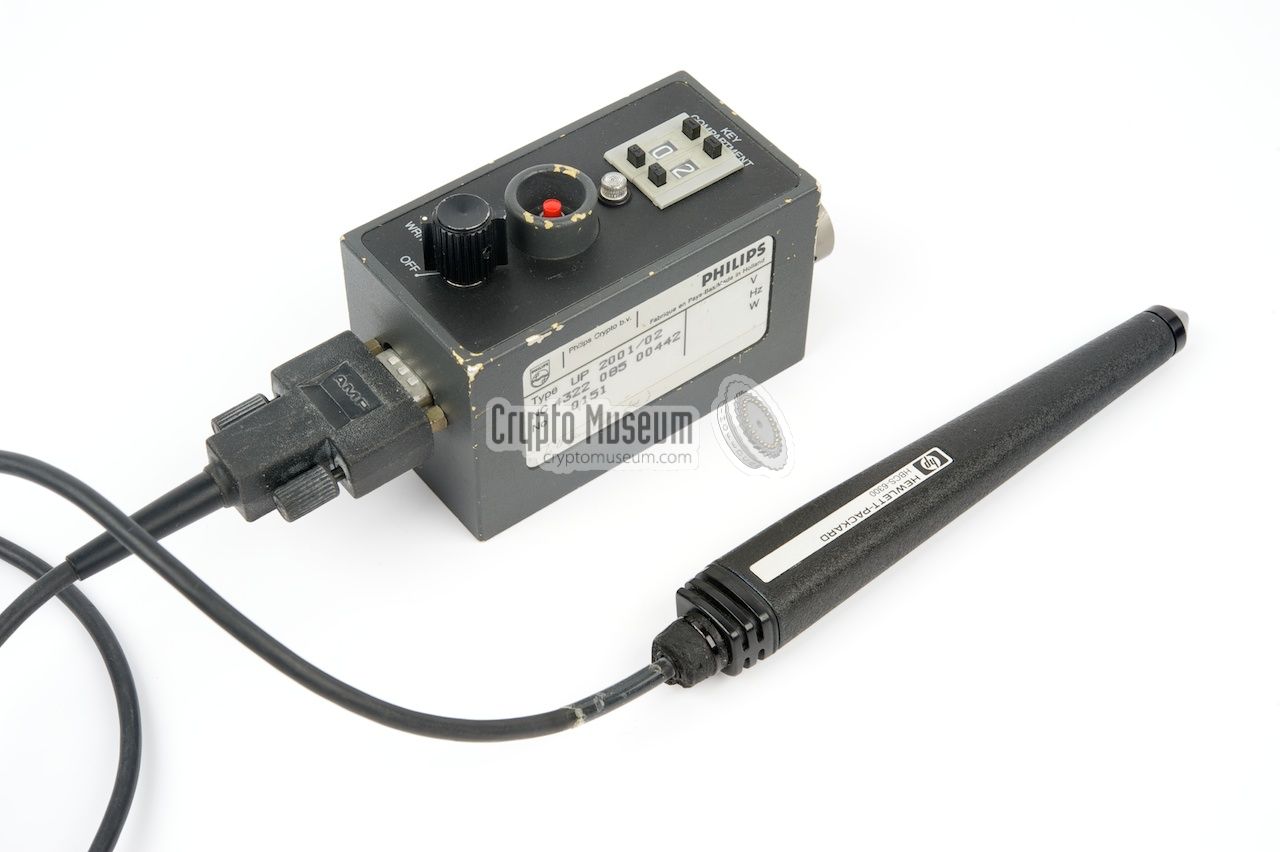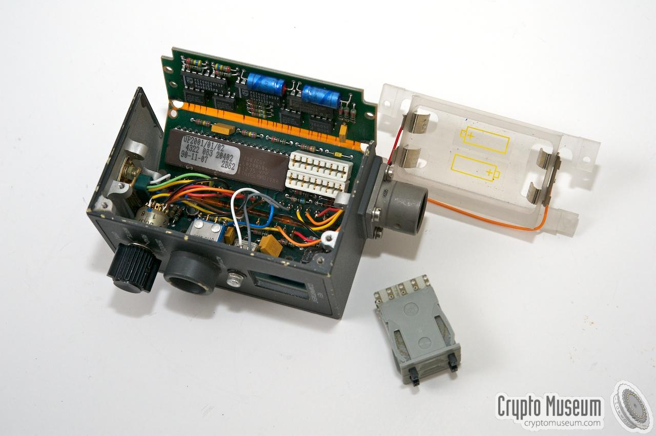 THANKS — The UP-2001 featured on this page was donated to Crypto Museum in 2012 by mr. Remco Hopman [1]. He had found the device for a very modest price on a local fleamarket in 2011. It had probably been used with a Spendex 40 crypto phone, as the text 'fill gun (spendex)' is pencil-written on its side.