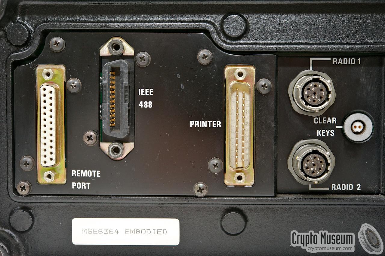 Radio 2 and Clear Keys (Zeroize). The printer connector is a DB25 male socket