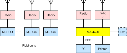 radio. At the right is the message base station. The MA-4420 is at the heart of