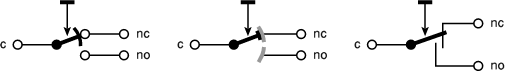 the common when the button is depressed, is known as normally open (no).