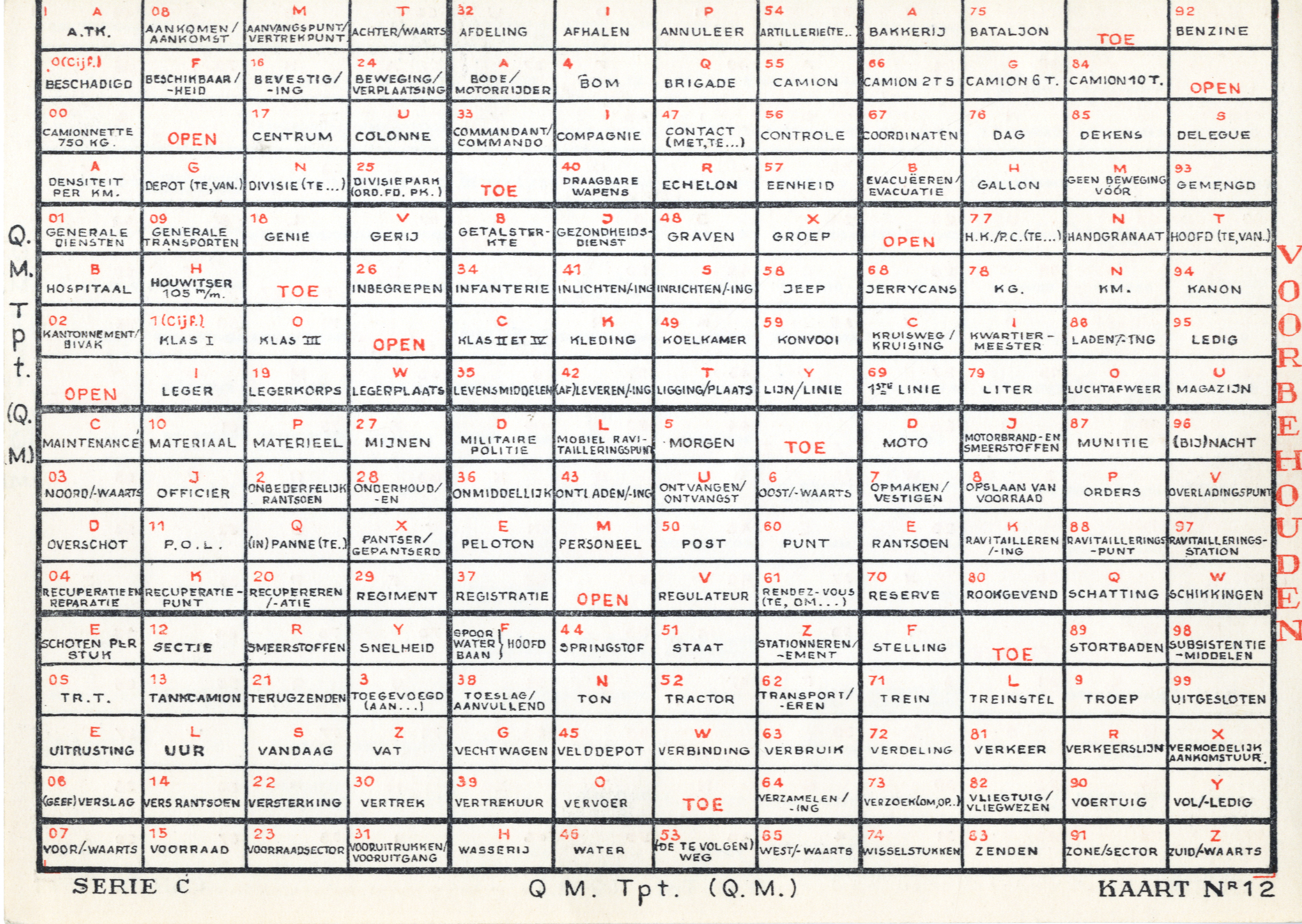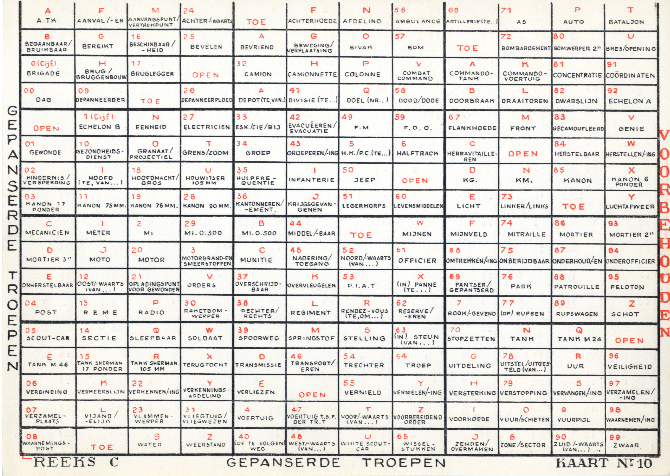 Slidex cards used in Belgium
