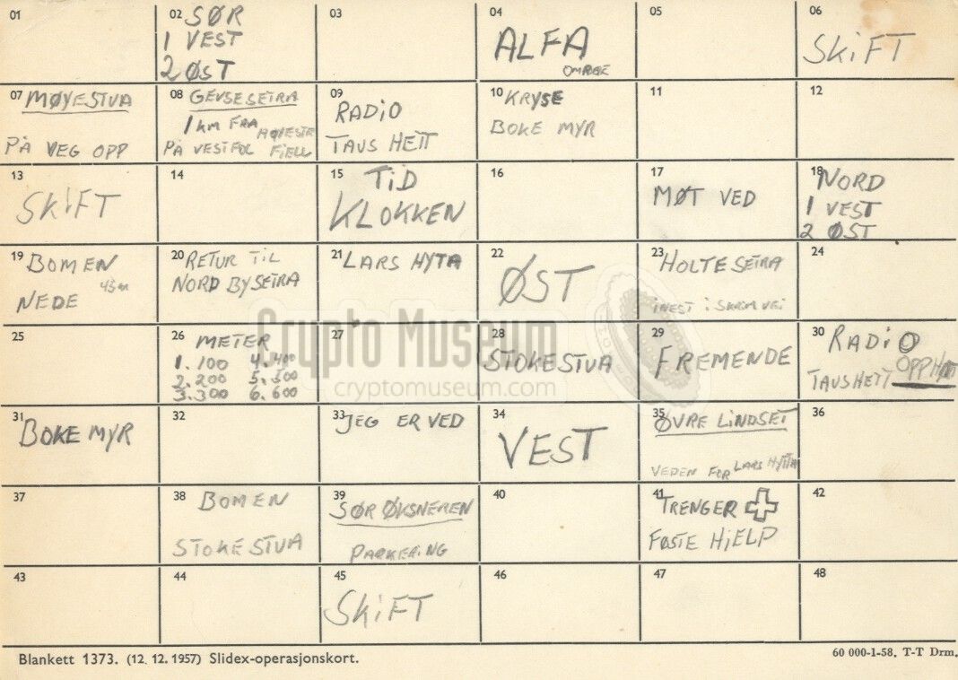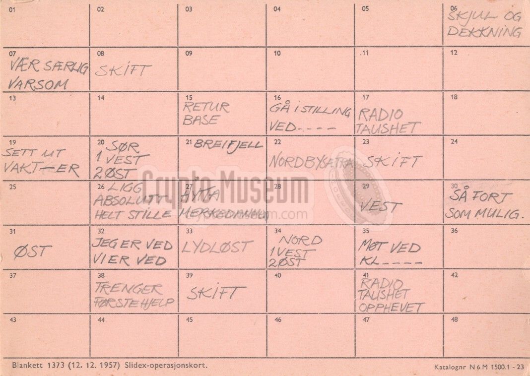 Below is an overview of the Slidex cards that were used in Norway from 1852