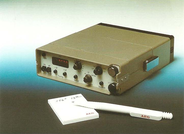 Device Portable radio direction finder Purpose Detection of clandestine transmissions Model PE 484/9 Manufacturer Telefunken Year 1989 Country Germany Frequency 150 kHz - 30 MHz Resolution 100 Hz Memories 16 Modulation see below Power 4V/DC — 14V/DC Batteries 4 x IEC R14 Consumption ≤ 1W Capacity Up to 80 hours Dimensions 190 x 165 x 55 mm Weight 2300 gram (without batteries)