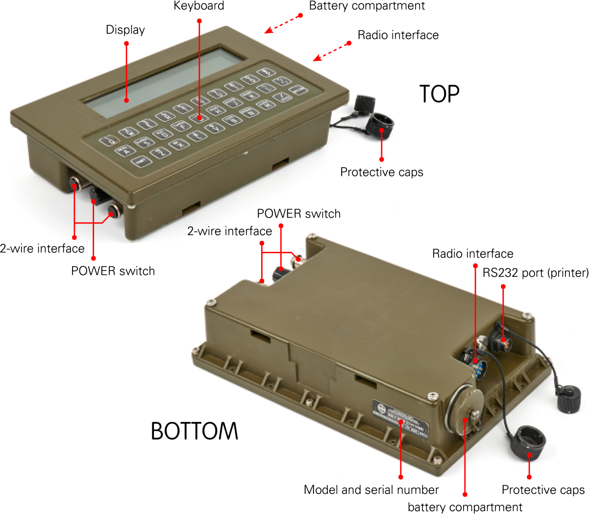Power 6V DC (4 x 1.5V C-size dry battery) Baudrate 75 — 2400 baud ➤ see list Display 4 x 40 character Liquid Crystal Display (LCD) Standard DEF-STAN-07-55 Dimensions 254 x 154 x 55 mm Weight 1.75 kg (including batteries)