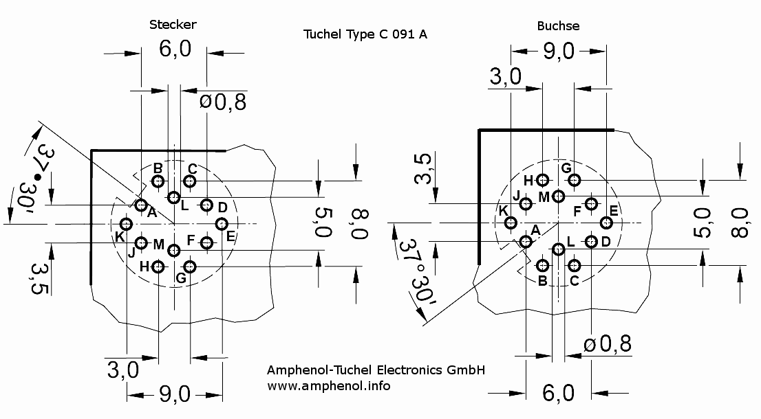 At the top of the device is a 12-pin circular Tuchel socket (C 091 A)